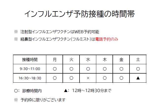 - ※フルミストとコロナ・インフル同時接種はお電話のみのご予約になります。
